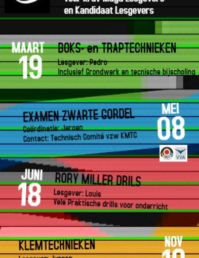 - 19/11/2022: Klemtechnieken ‘praktische Krav Maga toepassing’ door Jurgen. Een ‘must’ als Krav Maga lesgever of Krav Maga kandidaat lesgever met tal van praktische tips om uw leden te onderrichten.