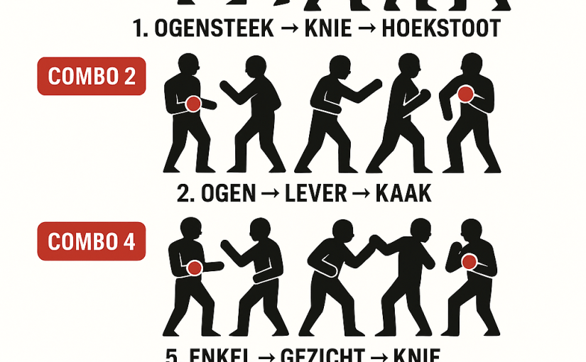 Elke maand wordt één van deze combo’s in de kijker gezet, met aandacht voor zowel techniek als de realistische toepassing binnen zelfverdediging.