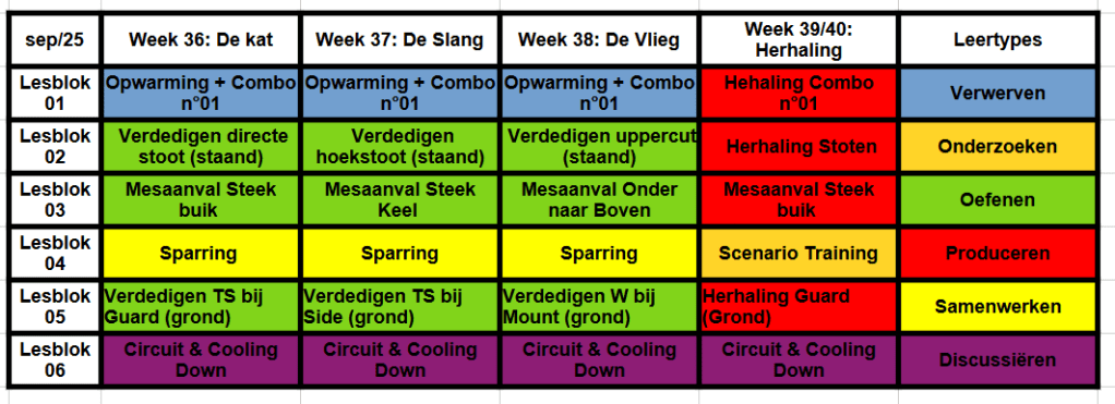 💪 Lesblok 03 – Mesaanval Onder naar Boven [Oefenen] Oefenen van redirect & controle bij opwaartse mesaanval. Focus op detectie en timing.